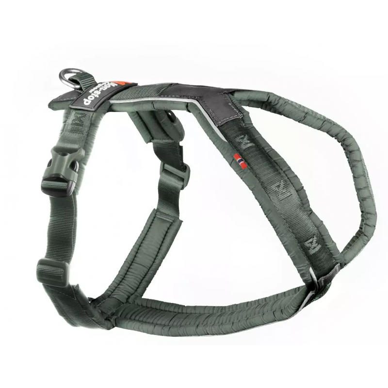 Line harness 5.0 er en svært allsidig hundesele, da den har flere punkter hvor du kan feste båndet. I tillegg til det vanlige festepunktet på ryggen, er det en festepunkt til sporline under brystet. Dermed kan hunden din bevege seg fritt uten å tråkke i sporlinen. Fra størrelse 3 og oppover er det et tredje festepunkt foran, som tilbyr mild antitrekk-kontroll.